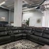 7-Piece Grey Top Grain Power Leather Sectional w/3 Recliners