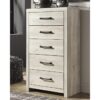 What a delightful take on rustic industrial style. Whether modern loft or modern farmhouse, the Cambeck chest makes itself at home. The whispy whitewash palette enhances without covering the grain for that weathered look you crave. Elongated drawer pulls elevate the aesthetic.