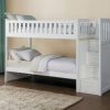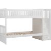 This transitional twin over twin reversible storage stair step bunkbed is featured in a white finish making it an appropriate choice for a number of youth bedroom settings.