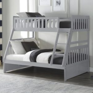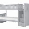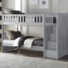 This transitional twin over twin reversible storage stairstep bunkbed is featured in a gray finish making it an appropriate choice for a number of youth bedroom settings.