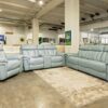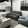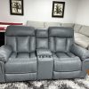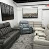 7-Piece Grey Top Grain Power Leather Sectional w/3 Recliners