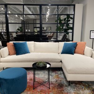 Beige Right Facing Fabric Sectional w/Decorative Pillows